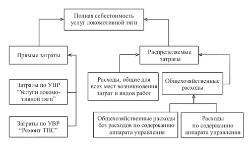 Тогда формирование полной себестоимости услуг локомотивной тяги будет выглядеть так, как это показано на схеме (рис. 1).