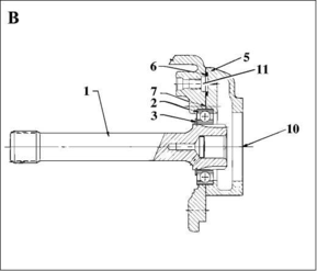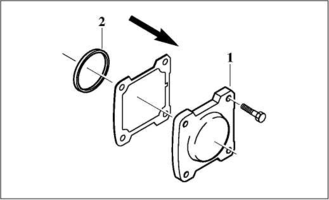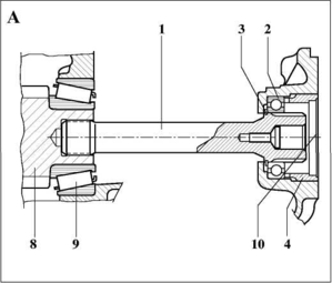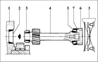1 Знімається кришка (1) і віддаляється розпірне кільце (2). Оглядаємо звільнилося установче місце від торця до зовнішнього кільця підшипника.