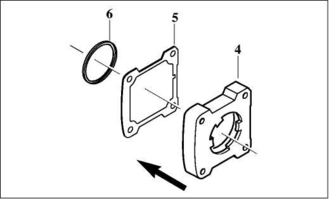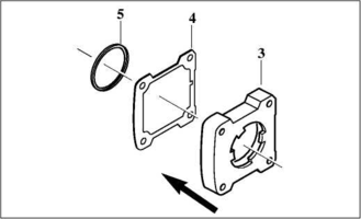 4 Прикріпити перехідною корпус (4) з прокладкою (5).