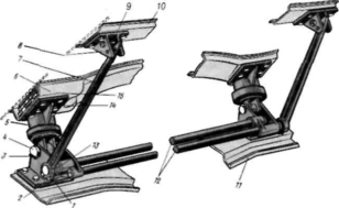 Передні опори (рис. 1.2) складаються з нижніх кронштейнів 1, закріплених болтами до першої поперечини 11 рами, і верхніх кронштейнів 5, які кріпляться до поперечної балки підлоги 6. Шарнірні з'єднання між ними дозволяють перекидати кабіну вперед.