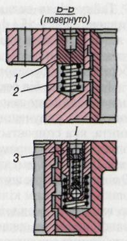 У кожний з трьох накрізних отворів корпусу клапана вставлено по два реактивних плунжери 8 (див. рис.2.5) з центруючими пружинами 6 між ними.