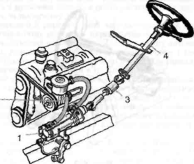 / — рульовийй механізм, 2 — гідронасос; 3 — кярданний вал; 4 — рульова колонка