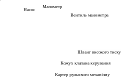Щоб перевірити тиск, що розвивається насосом гідропідсилювача, між насосом і шлангом високого тиску встановлюють пристосування (рис. 2.2.), що складається з манометра зі шкалою до 80 кг/див2 і вентиля, що перекриває подачу оливи до гідропідсилювача. Для перевірки необхідно відкрити вентиль і повернути колеса в одну зі сторін до упора; при малому числі оборотів колінчатого вала при холостому ході двигуна тиск оливи повинен бути не менш 60 кг/см2. Якщо тиск оливи менш 60 кг/см2, то вентиль потрібно повільно закрутити, стежачи за збільшенням тиску по манометрі. Якщо насос справний, то тиск повинний піднятися не менш чим до 65 кг/см2, і несправність варто шукати в механізмі рульового керування. При несправному насосі тиск не збільшиться [3].