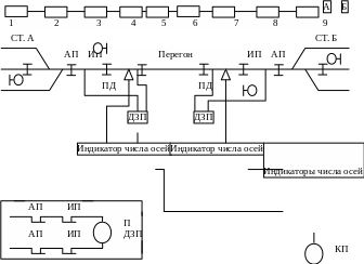 | 5 – поезд освободил участок удаления ИП ст. А и далее движется по перегону к ст. Б |