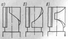 ТНВД золотникового типа. В ТНВД этого типа плунжер-золотник осуществляет подачу топлива и регулирует величину цикловой подачи. В верхней части плунжера отфрезерована фасонная выточка, образующая винтовую отсечную кромку, вертикальный и кольцевой пазы. В зависимости от способа регулирования цикловой подачи изменяется расположение отсечных кромок. На рис. 5 а, б и в показано расположение отсечных кромок при регулировании цикловой подачи изменением: конца подачи, начала подачи, начала и конца подачи.