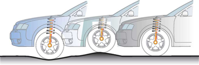 В стандартной ходовой части без регулирования дорожного просвета задняя ось, как правило, настроена на более высокую частоту собственных колебаний кузова. Это сделано из расчета, что при загрузке автомобиля в основном увеличивается нагрузка на заднюю ось, что автоматически понижает частоту собственных колебаний.