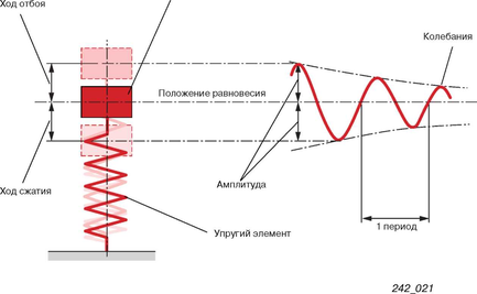 Если подрессоренная масса будет выведена из положения равновесия некоторой силой, то в упругом элементе возникнет восстанавливающая сила, которая позволит массе выполнить движение возврата. При этом масса «проскакивает» положение равновесия, и при этом вновь возникает восстанавливающая сила. Этот процесс будет повторяться до тех пор, пока из-за сопротивления воздуха и внутреннего трения в упругом элементе колебания не затухнут.