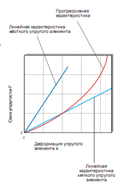Если жёсткость упругого элемента растёт вместе с увеличением его деформации, то он имеет прогрессивную характеристику.