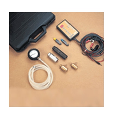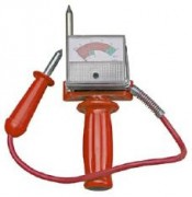 - прибор для проверки искровых свечей зажигания. Позволяет проводить испытания свечи на герметичность и на бесперебойность искрообразования при заданном давлении в испытательной камере. Давление создается ручным насосом, а искрообразование инициируется встроенным источником высокого напряжения. Для удобства пользования на панели прибора имеется таблица значений испытательного давления в зависимости от зазора между электродами свечи.
