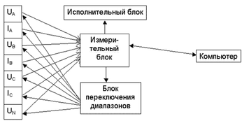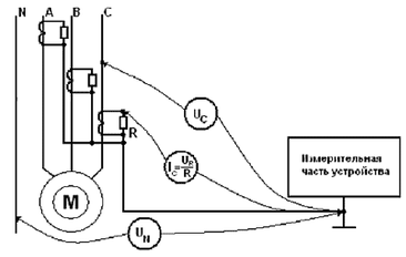 Рис. 5. Схема подключения измерительной части комплекса к цепи электродвигателя