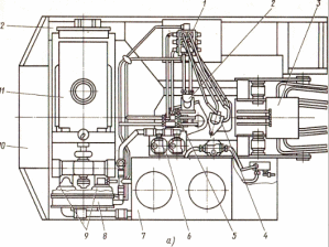 Привод насосів 21 і 25 (Рис.2.2, в) силові установки, а також вентилятора 22 оливоохолоджувача виробляється від дизеля 19 через сполучну муфту 20 і роздавальний редуктор 18, а також через клинопасову передачу 24-23.