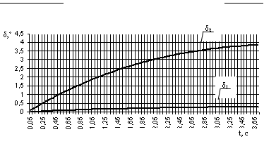 Рис.4. Изменение углов увода во времени первой и второй оси автомобиля со схемой 1-00-4