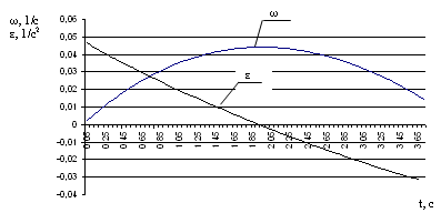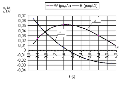 Рис.7. Изменение угловой скорости и углового ускорения во временипродольной оси автомобиля со схемой 1-2-00