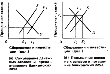 В Кейнсианской теории особо оговаривается, что население хранит деньги на руках, не только чтобы производить повседневные сделки, но и для накопления богатства в наличной форме (не в банках). Важно отметить, что при уменьшении части этих денежных средств и предоставлении их инвесторам на денежном рынке может образоваться избыток средств по сравнению с текущими сбережениями. Аналогично, когда кредитные учреждения предоставляют ссуды, они увеличивают предложение денег. Кредиты, предоставляемые банками и другими финансовыми учреждениями, также являются средством возрастания текущих сбережений, используемых в качестве источника средств для инвестиций. В результате получается, что уменьшение денежных средств на руках у домохозяйств и предоставление ссуд банками могут привести к превышению величины инвестиций суммы текущих сбережений. Это означает, что закон Сэя не действует и что уровни производства, занятости и цен могут колебаться. Мы вскоре увидим, что в результате превышения инвестиций над сбережениями происходит возрастание общих расходов, что, в свою очередь, приводит к оживлению экономики. Если экономика изначально находилась в стадии экономического спада, то объемы производства размер занятости увеличиваются; если в экономике уже достигнута полная занятость, то дополнительное расходование порождает инфляцию спроса.