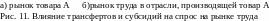 акая ситуация отображена на Рис. 11. В результате субсидирования или трансфертных платежей спрос на товар А повысился. Это, в свою очередь, привело к повышению спроса на труд в отрасли, производящей товар А. Также при прочих равных в отрасли повысится равновесная ставка заработной платы и возрастет уровень занятости.