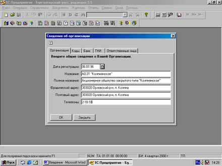 Рис. 5. Заполнение реквизитов «Сведения об организации»