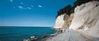 Apart from the Königsstuhl, the highest point on the chalk coastline, the whole length of the chalk coastline is impressive. It stretches over a length of 10 km, reaches a height of 117 m and consists of both active and inactive cliffs, illustrating the dynamics of an active steep coastline.