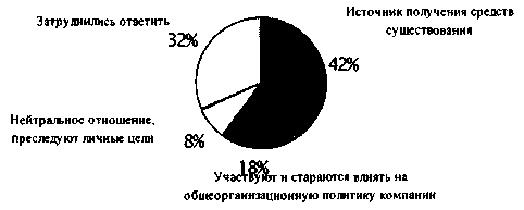 Такое поведение осуществляется благодаря установлению соответствия между представлениями работников о своей роли и месте в структуре организации и предлагаемыми организацией возможностями. В настоящее время большинство работников, не ощущают своего влияния на деятельность организации, а видят в ней лишь источник своего обогащения. Персонал организации ощущает себя только исполнителем чужих указаний, и в этих условиях от него трудно ожидать действий, направленных на интеграцию взаимных интересов работников и организации (рис.2).