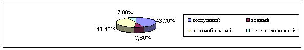 Туризм и транспорт взаимно влияют на развитие друг друга, факторы времени и удобства побеждают над ценовым фактором, поэтому самый быстрый авиационный и самый доступный (по месту назначения и инфраструктуре) автомобильный заметно опережают более дешевые водный и железнодорожный.