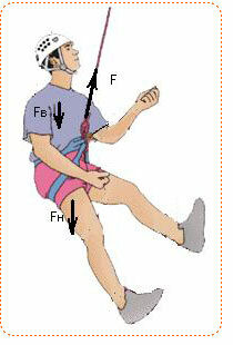 П=Е+Атрен+Аторм — из закона сохранения энергии следует, что потенциальная энергия человека П переходит в энергию деформации веревки Е, и работу сил трения в карабине Атрен и работу сил трения в тормозном устройстве Аторм.