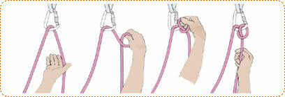 Конец веревки ввязывается в страхуемого. При работе в двойке страхующий, как правило, также ввязывает другой конец веревки в свою систему (это можно сделать способом, указанным на рисунке).