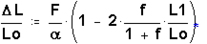 ΔL=(F·Lo/α)·(1-(2f/(1+f))·(L1/Lo))