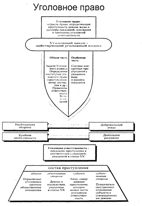 Уголовное право - система законов, определяющих круг преступных деяний, виды и размер наказаний за них, основания и принципы применения к преступникам мер уголовной ответственности.