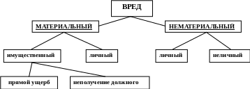 Материальный вред всегда связан с физическим повреждением материального предмета (имущественный вред) , но он может заключаться и в причинении телесного вреда человеку (личный материальный вред) .
