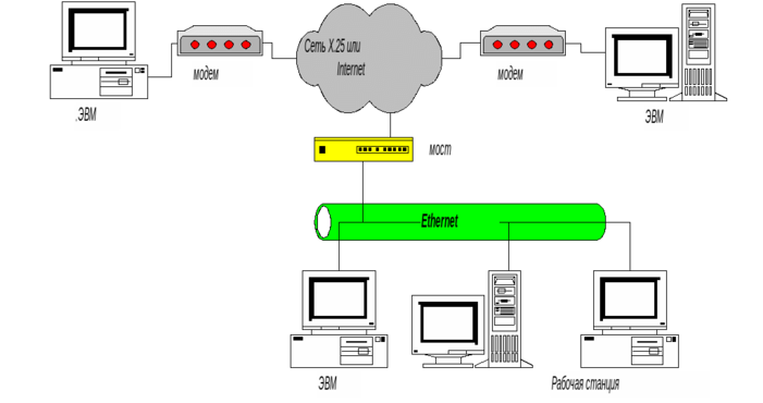 Рисунок 6 - Принцип объединения компьютеров в глобальных сетях.