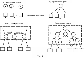 Процесс управления значительно упрощается при использовании системы управления с иерархической структурой. Для управления иерархической структуры характерно наличие нескольких уровней. управления. Типичным примером систем такого рода является административное управление. На рис-3 приведены классы структур.