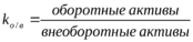 Активы организации состоят из внеоборотных и оборотных активов. Поэтому наиболее общую структуру активов характеризует коэффициент соотношения оборотных и внеоборотных активов, рассчитываемый по формуле: