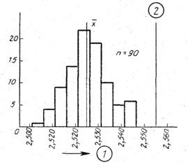 и наносят на гистограмму линию, соответствующую х (рис. 2.15).