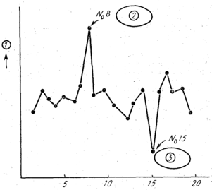 Как видно на графике (рис. 2.29), точка № 8 и точка № 15 резко отличаются от остальных точек тем, что одна имеет значительно большее, а другая значительно меньшее значение, чем другие. Но если точка № 8 окажется на графике, как показано на рис. 2.30, несколько ниже, чем на рис. 2.29, то будет трудно решить, действительно ли она имеет слишком большое значение по сравнению с другими точками.