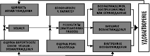 Синтезом теории ожидания и теории справедливости явилось модель Портера-Лоулера. В их модели показанной на рис. 1, фигурирует 5 переменных: затраченные усилия, восприятие, полученные результаты, вознаграждение, степень удовлетворения.