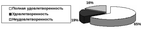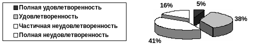 Полностью не удовлетворены выполняемой работой и занимаемой должностью 16% - 6 человек. Причиной полной неудовлетворенности может быть как плохая мотивация, неподходящая организация труда, так и другие психологические и социальные факторы. Этим людям следовало бы задуматься об перемене рода деятельности.