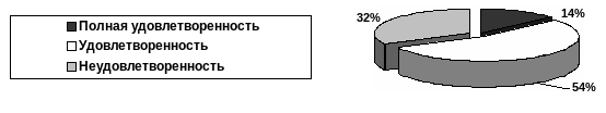 Полностью удовлетворены данной категорией всего лишь 5% опрошенных, 43% удовлетворены данной категорией, однако имеют определенные трудности в использовании своих знаний, умений и навыков. Особое внимание следует обратить на то, что более половины опрошенных –52% не удовлетворены данной категорией, т.е. при выполнении работы они не испытывают чувства успеха и удовлетворенности за свой труд.