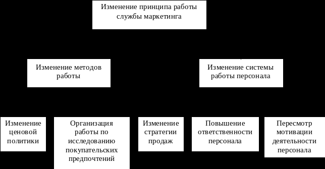 во-вторых, изменение структуры службы маркетинга считается не целесообразным, т.к. фирма имеет квалифицированных специалистов, а поиск нового персонала займет время и приведет к дополнительным расходам денежных средств.