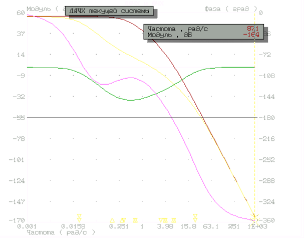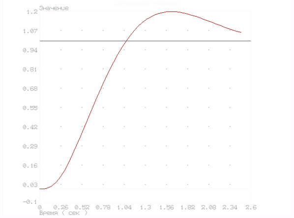 Переходный процесс удовлетворяет условиям задания, система устойчива.