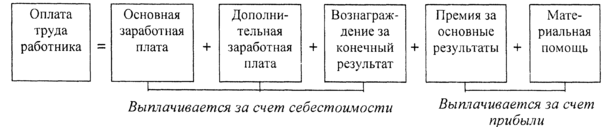 Структура оплаты труда позволяет определить, какие составляющие элементы входят в оплату труда работника, в каких статьях себестоимости и прибыли они отражаются, каков удельный вес конкретного элемента в общей величине заработной платы. Структура оплаты труда в процентном отношении весьма специфична для различных регионов России, отраслей народного хозяйства и конкретных типов предприятий, и такой анализ выходит за пределы данной книги. Однако в общем виде структура оплаты труда работника предприятия или организации имеет следующий вид:/12,c.504/