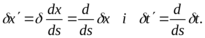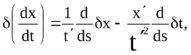 де штрих означає похідну по незалежній змінній s. У формулі (26) δx ́ , δt ́ можна обчислити за правилом