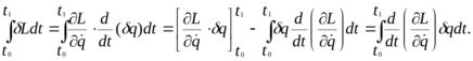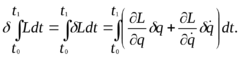 У співвідношенні (11) інтеграл лівої частини рівності є функціонал, обчислений для довільного уявного руху. Перший інтеграл правої частини –той самий функціонал, обчислений для дійсного руху точки. Другий інтеграл правої частини у формулі (11) є головною, лінійною відносно δq (відносно ε) частиною приросту цього функціоналу.