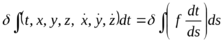 в розглядуваному загальному випадку легко знайти, вводячи нову незалежну змінну s, від якої, за припущенням, залежать х і t (s може бути, наприклад, дугою траєкторії точки). Оскільки властивості варіації аналогічні властивостям диференціалу, то за тими самими правилами, що й для диференціалу, знаходимо: