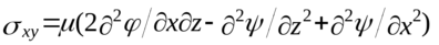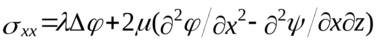Используя эти выражения и закон Гука для изотропного тела, можно записать отличные от нуля компоненты тензора напряжений: