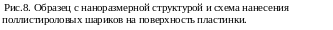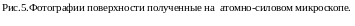 Во-первых исследовалась структура состоящая из наноразмерных кластеров кремния на поверхности кристаллического кремния. Данная структура была получена посредством лазеро-индуцированного осаждения Si из газовой фазы (LCVD метод), при разложении газа SiF4 в фокусе непрерывного перестраиваемого по длине волны CO2 лазера. LCVD производилось при комнатной температуре, поэтому поверхность имеет кластерную структуру сложной морфологии. Изучение структуры на атомно-силовом микроскопе (рис.5) показало, что средний размер неоднородности составляет ~1500 нм., а высота неровностей порядка 450 нм.. Пользуясь формулами (21) и (22) можно оценить ожидаемое замедление рэлеевской волны на шероховатой поверхности, по сравнению с волной на гладкой поверхности. В приближении неровности, описываемой функцией