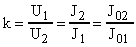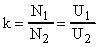 где U1 и U2 - напряжение на первичной и вторичной обмотках трансформатора.