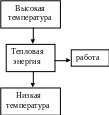 сновная идея лежащая в основе любого теплового двигателя, состоит в следующем: механическая энергия может быть получена за счет тепловой, только если дать возможность тепловой энергии переходить из области с высокой температурой в область с низкой температурой, причем в процессе этого перехода часть тепловой энергии может перейти в механическую работу.