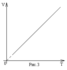 Зависимость объема от температуры (рис.2) была открыта Ж. Гей-Люссаком. Он обнаружил, что при постоянном давлении объем данного количества газа прямо пропорционален температуре: