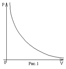 Экспериментально было обнаружено, что для данного количества газа в хорошем приближении выполняется соотношение: при постоянной температуре объем газа обратно пропорционален приложенному к нему давлению (рис.1):