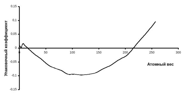 Рис. 1.2. Зависимость упаковочного коэффициента от массового числа