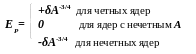 Пятый член, представляющий парную энергию, зависит от четности числа нуклонов: